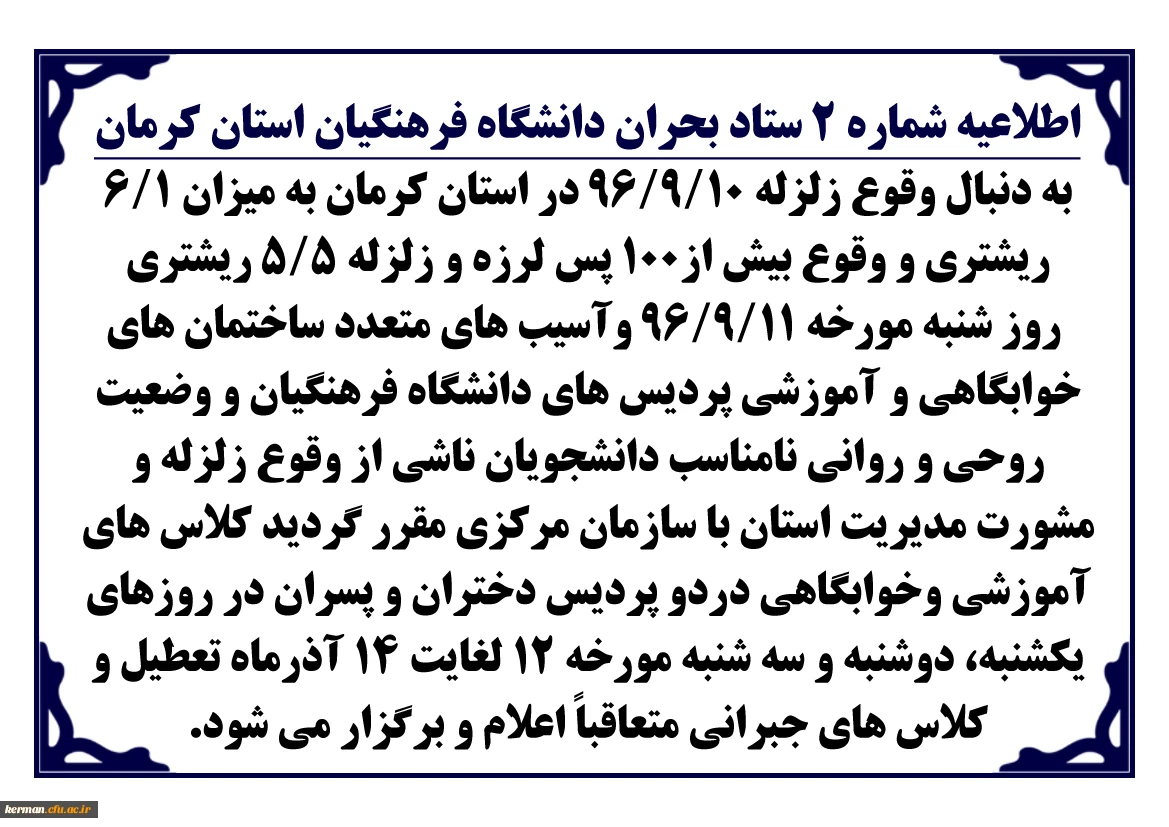 اطلاعیه شماره 2 ستاد بحران دانشگاه