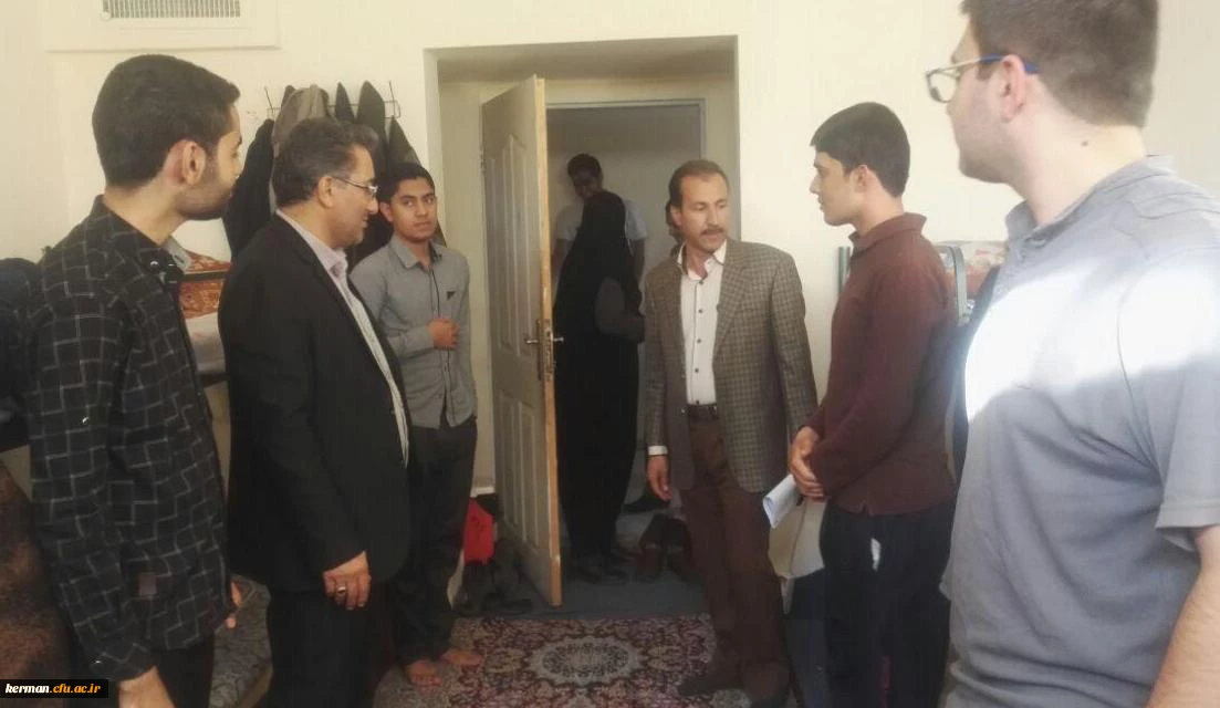 بازدید مشهدی رئیس اداره سراهای دانشجویی و همراهان از خوابگاه ها و سلف سرویس دانشگاه فرهنگیان استان کرمان