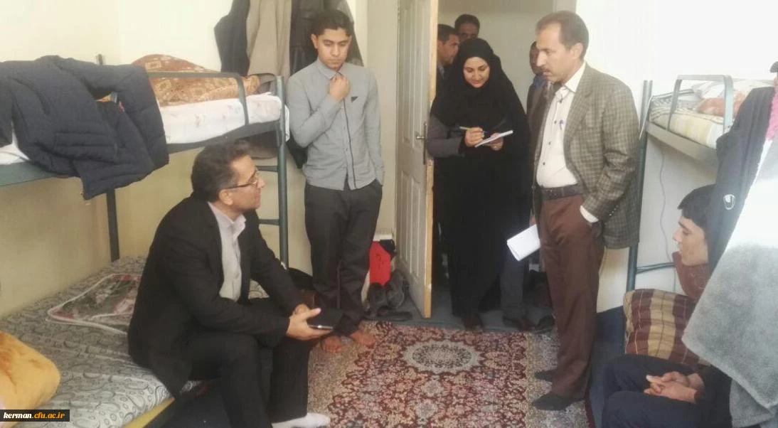 بازدید مشهدی رئیس اداره سراهای دانشجویی و همراهان از خوابگاه ها و سلف سرویس دانشگاه فرهنگیان استان کرمان
