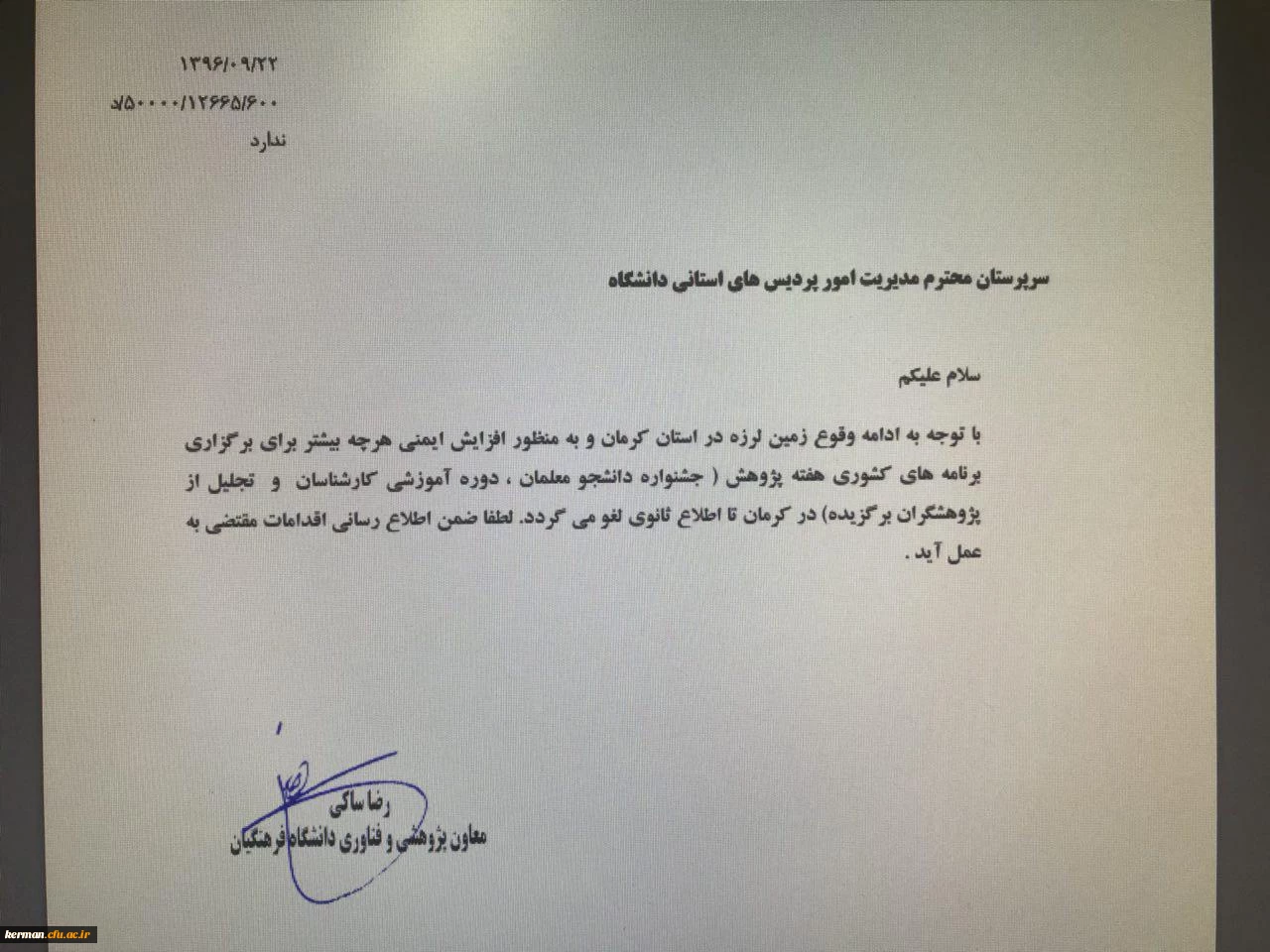 امتیاز دهید : اطلاعیه دانشگاه فرهنگیان استان کرمان در خصوص لغو همایش کشوری هفته پژوهش چهارشنبه 22 آذر 1396 ساعت 15:45