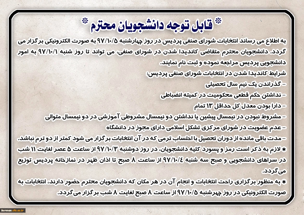 اطلاعیه انتخابات شورای صنفی