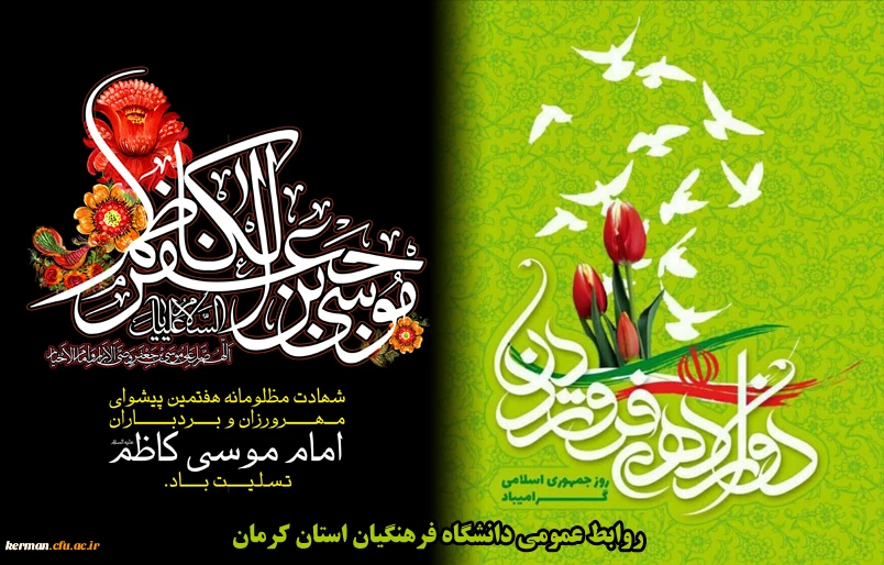 امتیاز دهید : 12 فروردین روز فروردین جمهوری اسلامی، شهادت امام کاظم علیه السلام دوشنبه 12 فروردین 1398 ساعت 11:24