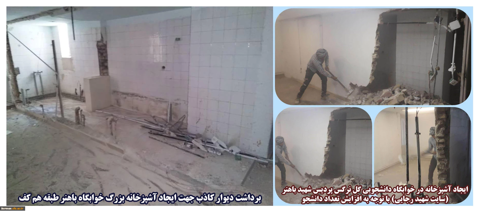 اهم فعالیت های عمرانی در پردیس های دانشگاه فرهنگیان استان کرمان جهت آماده نمودن امکانات آموزشی، دانشجویی و رفاهی در شهریور ماه ۹۸