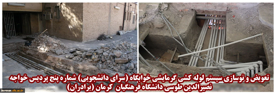 اهم فعالیت های عمرانی در پردیس های دانشگاه فرهنگیان استان کرمان جهت آماده نمودن امکانات آموزشی، دانشجویی و رفاهی در شهریور ماه ۹۸