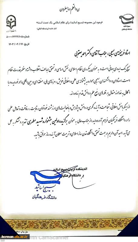 معرفی کانون بسیج اساتید دانشگاه فرهنگیان استان کرمان به عنوان کانون برتر در بین دانشگاه های فرهنگیان کشور 5